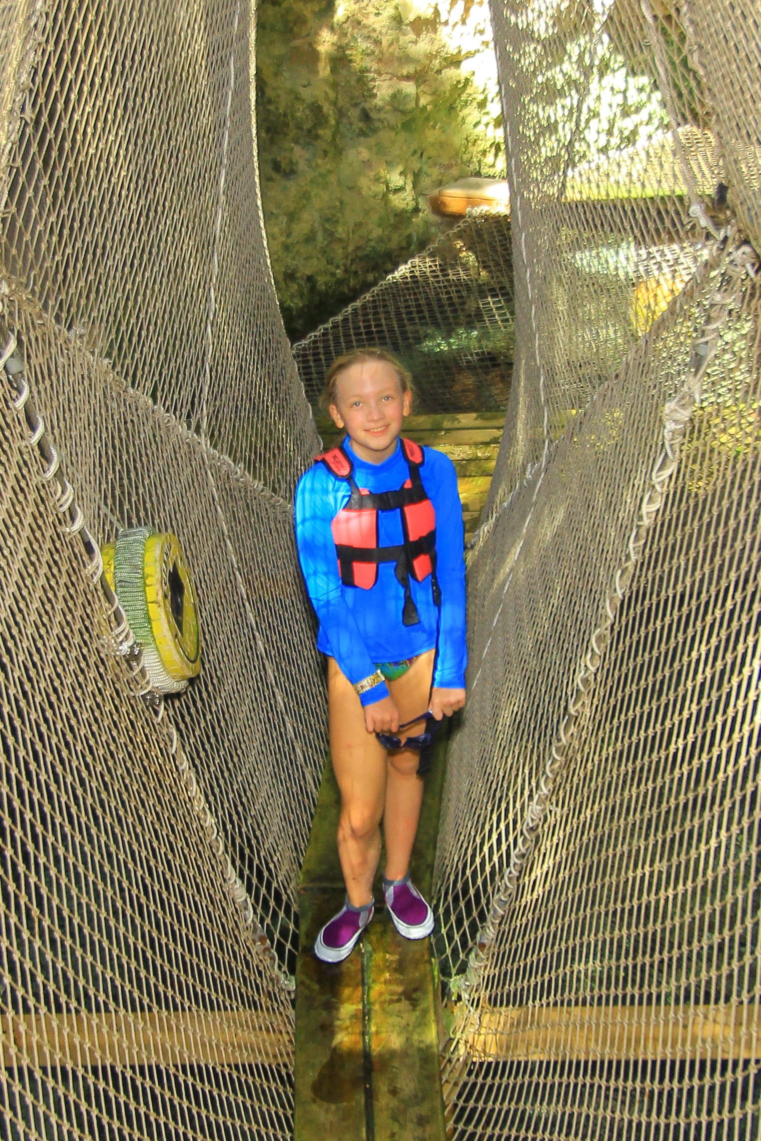 One of the areas recommend to us was Children’s World, so we headed there first. I was hesitant at first because I thought it might be too young for my kids (ages 8 and 10), but it was by no means boring. As soon as we got there, they were having a blast! They had such a great time doing a variety of obstacles and slides into lagoons and cenotes.