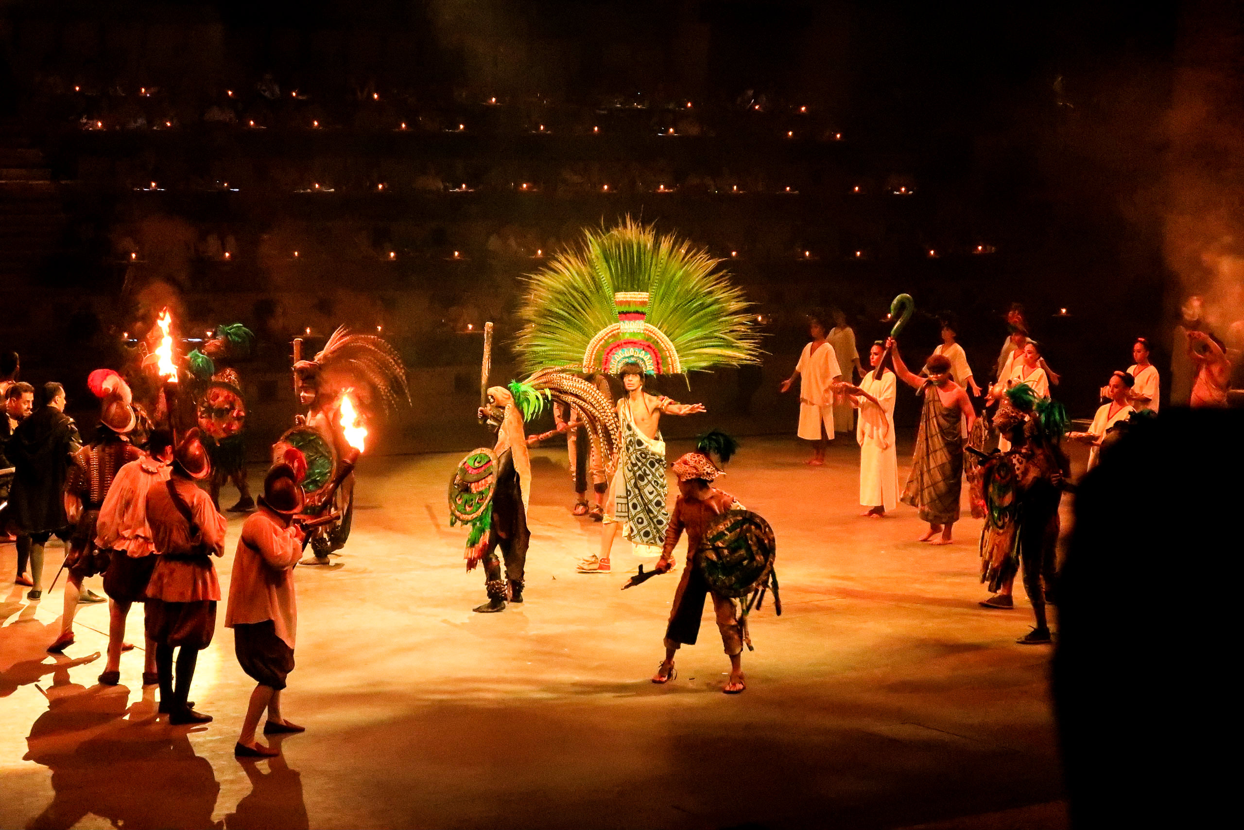 There was a little bit of everything. At the beginning, everyone lighting a candle, and there is a great ambiance. The show starts off with the history of Mexico.