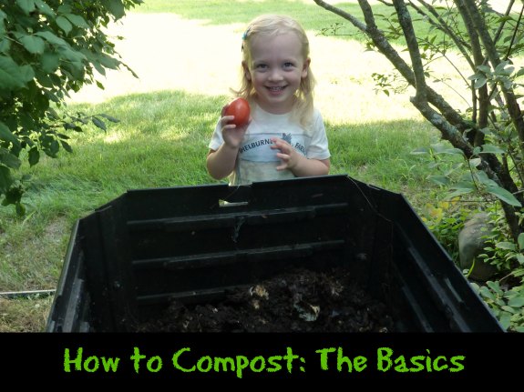 Composting is very easy to do – all you need is some sort of composting bin outside. The picture above is my daughter composting some food scraps when she was little!