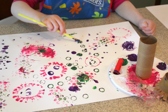 This is so fun and creative! I love having the kids use unconventional items to paint with.