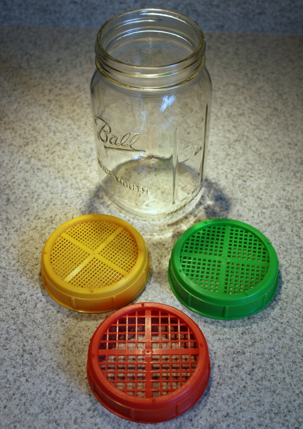 You will also need sprouting supplies. This can be something like a tray system or bag, or as simple as sprouting lids that you use on a canning jar. I use a glass Ball canning jar, and a set of lids with various mesh sizes. You can also trying simply using a bowl, as long as you can adequately drain the seeds.