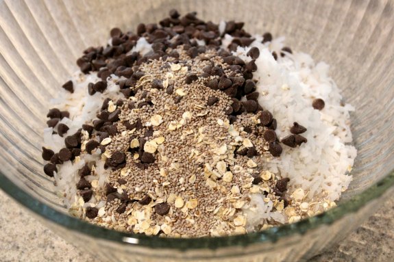 Mix the dry ingredients first, and then add the wet. I add the honey last, by drizzling it over the mixture, because it can make the recipe very sweet, so I add it little by little until I get just the right consistency.