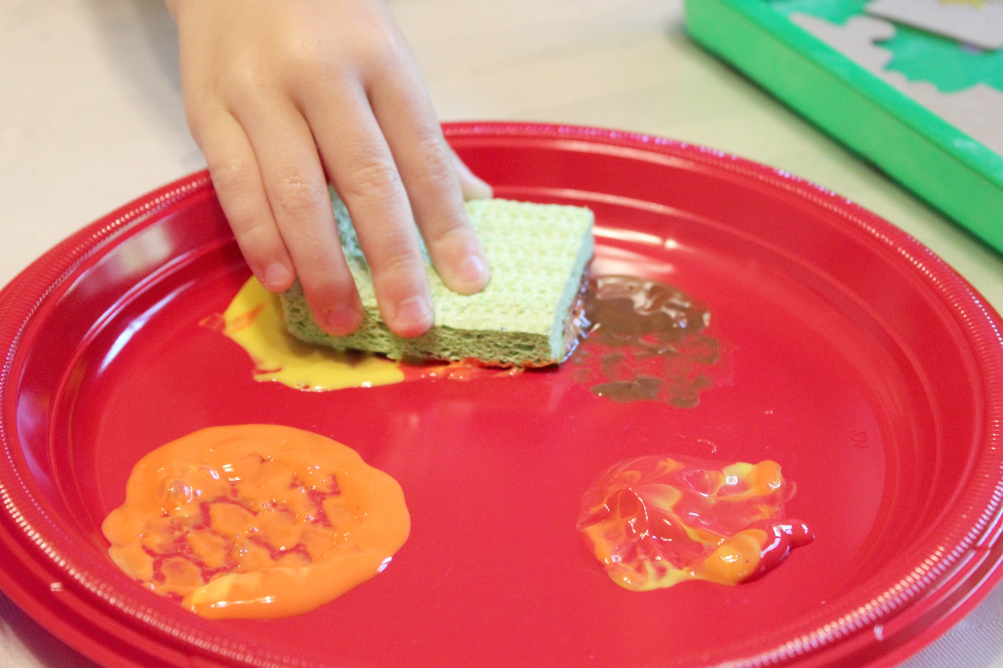We used a regular sponge to do a sponge-painting technique, but you can use a brush or even fingerpaint with the colors.