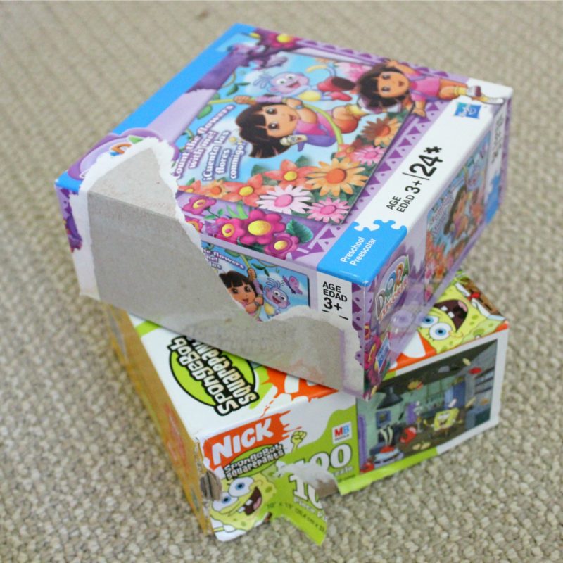 THis is such a cute craft. We have several old puzzles we can use to make this.