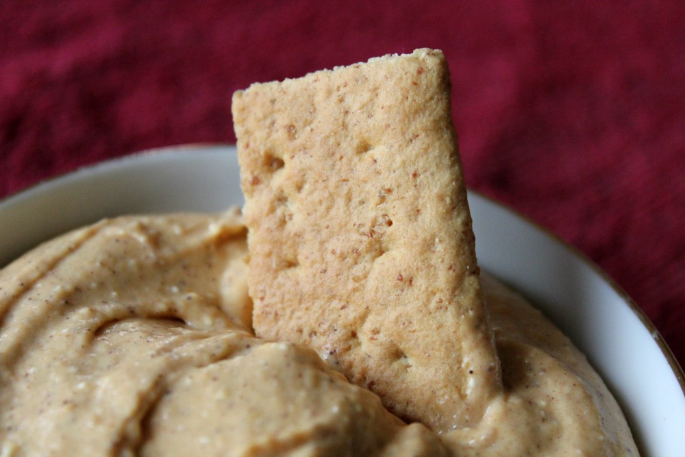 Serve with graham crackers (great way to use all the leftover graham crackers we have from campfire s’mores!), teddy grahams, cookies, fruit, and more.
