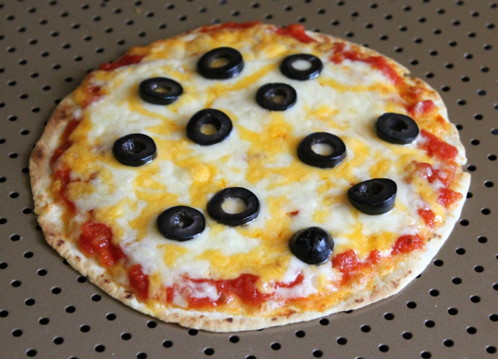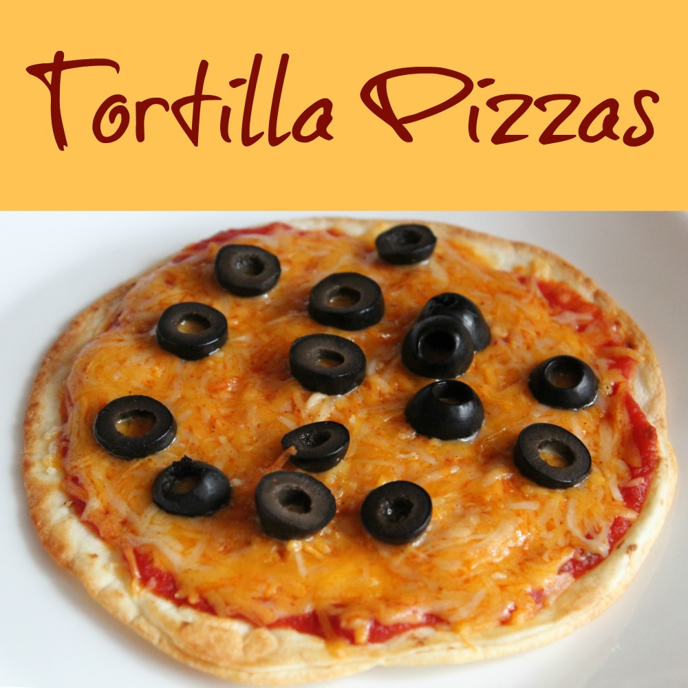 Lately, we have been making a lot of tortilla pizzas. This is one of those meals that you can make a lot faster than making a real pizza from scratch. I can easily keep the ingredients on hand, and these are so easy to create – even the kids can help! No waiting for dough to rise and a long cooking time. Another thing I love is that this is often a much better portion size than a regular pizza, considering the “thin crust” of a tortilla and because we use small tortillas. You can fit small tortillas in a toaster oven!