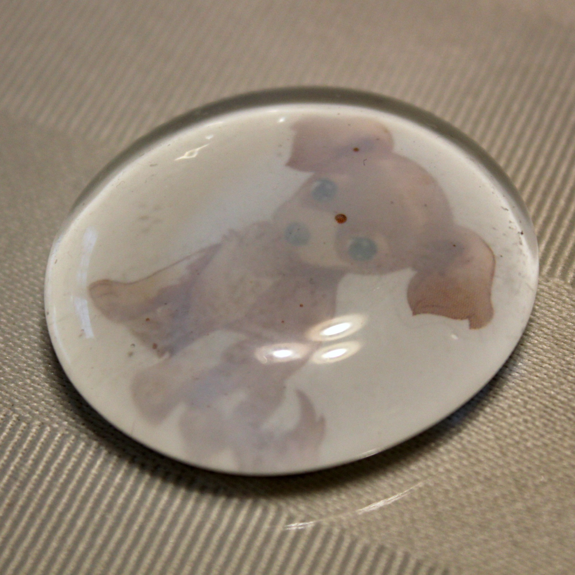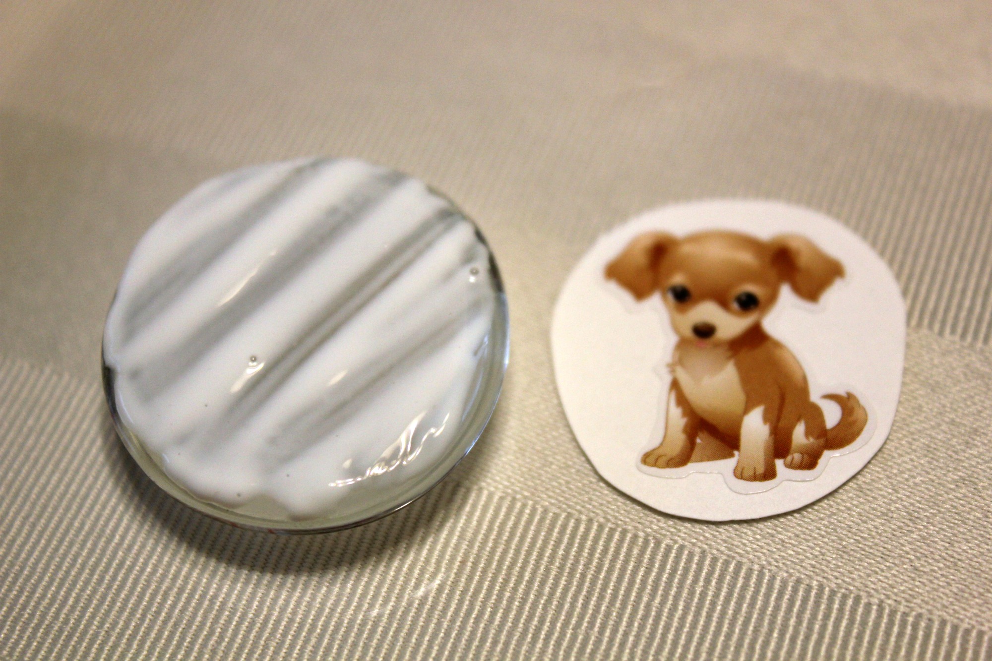Place your image on the glass stone. Briefly press the stone against a flat surface to remove any bubbles. The Mod Podge will add a white ‘haze’ over your image, but don’t be alarmed – it dries clear – I promise!