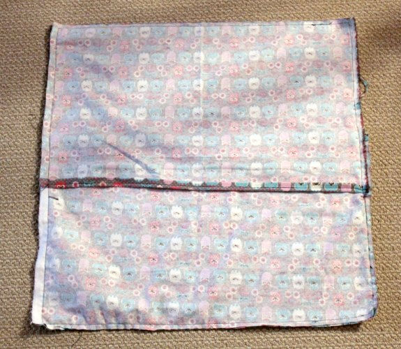 Lay your fabric with the finished/right sides facing each other (inwards), since you are going to turn the case inside out when you are done. You want the hemmed edges in the middle, overlapping.