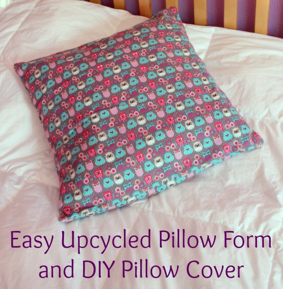 We have so many pillows around our house – sooner or later, it is time to get rid of old pillows. Perhaps they have become flattened or lumpy, or you want a clean, new pillow. This is an easy project to upcycle old bed pillows into an easy throw pillow and a good beginner’s sewing project if you are learning to use a sewing machine. I am fairly new to sewing, and this was very doable for me – not everything came out perfect but for a kid’s pillow, it came out great.