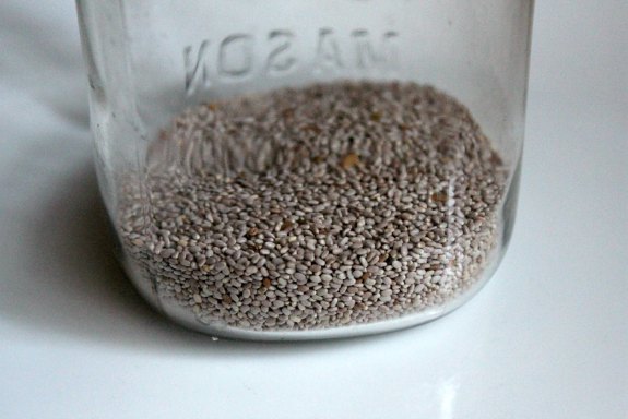 I use a Mason jar, but you can use any kind of container to mix and store your chia seed mixture.