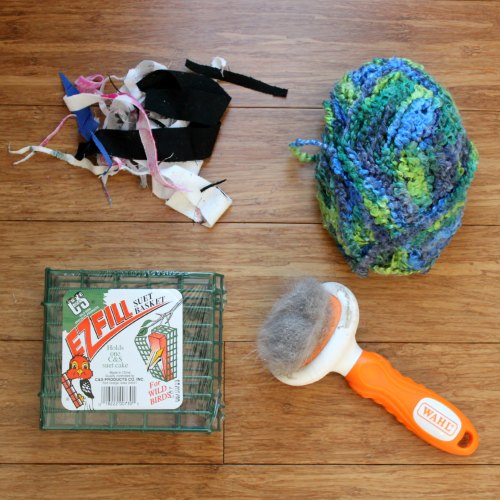 Cut materials, especially string, twine, yarn, etc. into small lengths. This makes it more manageable for the birds and helps prevent them from becoming tangled in the materials.