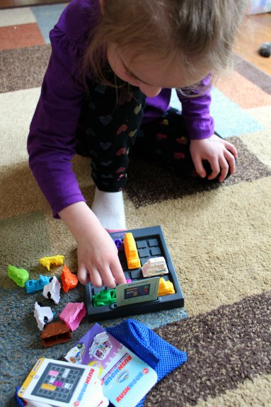 Our family loves games, and I love the idea of a game that doesn’t require any electronics. I had heard of Rush Hour before, so I was excited to try out Rush Hour Jr. with my two girls. I love games that encourage logical thinking!