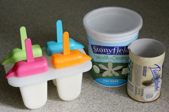 Once you have mixed your yogurt and pina colada concentrate to taste, pour into popsicle molds and freeze.