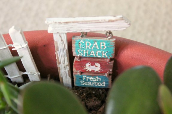 I have made fairy gardens with my kids before, and this time I decided on a garden for a friend. The beach theme was for someone who loves visiting Cape Cod.