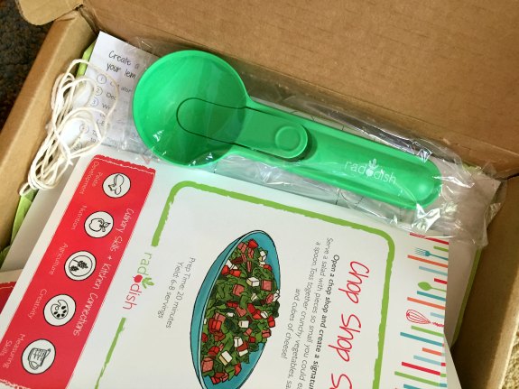 When I first received this box, I was thinking how it would be nice if they had various options for dietary needs – for example, my kids are vegetarian and my youngest has a peanut allergy. I learned that they have a resource on their website for making substitutions! (You can check it out here: http://www.raddishkids.com/pages/extensions).