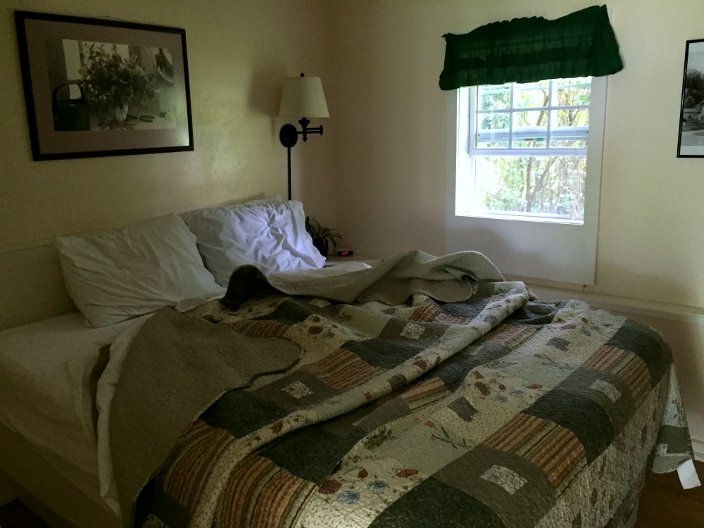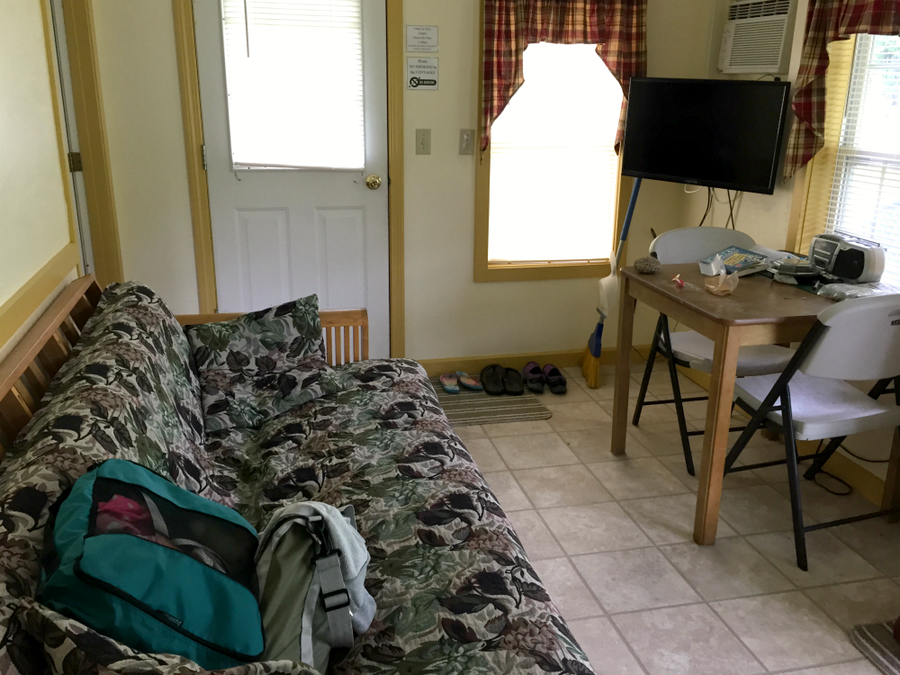 The cottage had lots of good amenities like a kitchenette, two bedrooms, bathroom with shower, TV, and porch. It is so nice to be able to bring our own food when we travel.