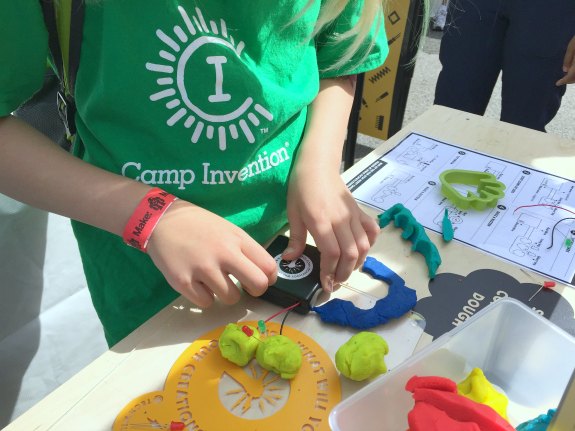 At another station, the kids created a circuit using play dough, lighting up two LED lights.