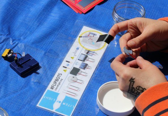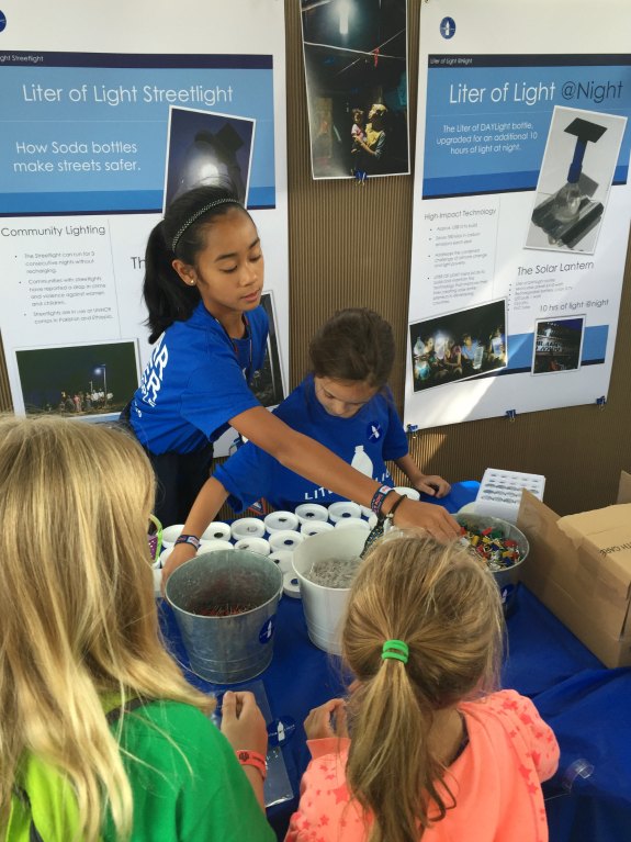 Among stuff to try and buy, there are also non-profits, like Liter of Light. This organization creates light at a low cost for places that need it around the world. This is such a fascinating concept, and the kids even got to make their own light! They gathered a handful of parts and a small glass jar to create a light that turns on (and changes color) when you flip the jar upside down.