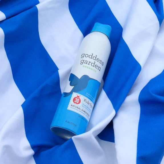 The Goddess Garden Organics Kid’s Sport Sunscreen goes with us every day to the pool. It is a convenient spray, and I have to rub it in for even coverage. But it goes on easily. My younger daughter has eczema and most sprays bother her skin, but this one doesn’t irritate her skin like the ones that have chemicals.