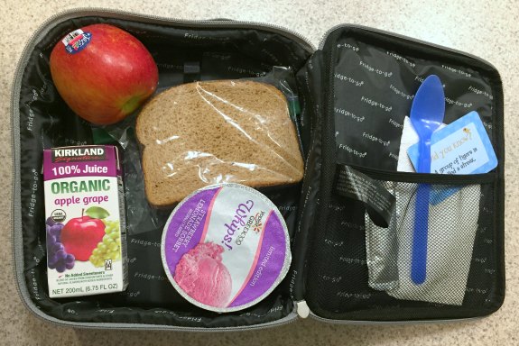 This lunch box fits a surprising amount of food. It is nice to be able to easily fit a variety of foods, all without having to cram it in among a cold pack and utensils, napkins, etc.