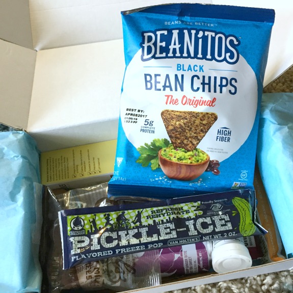 My Daily Goodie Box arrived packed with lots of awesome goodies! I don’t think there were any products that I had had before or were even familiar with, so it was a lot of fun looking through the box. I also thought it was cool because some of the products are things you might use every day (like chips), and others are more out there (like caffeine gummies).