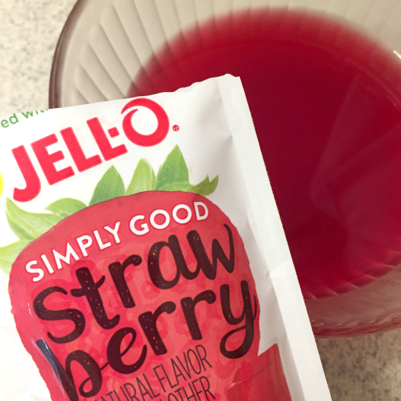 The gelatin is so easy to make: mix the powder with hot water and chill in the fridge. Because it just requires mixing, the kids could handle making this on their own (being careful about the hot water).