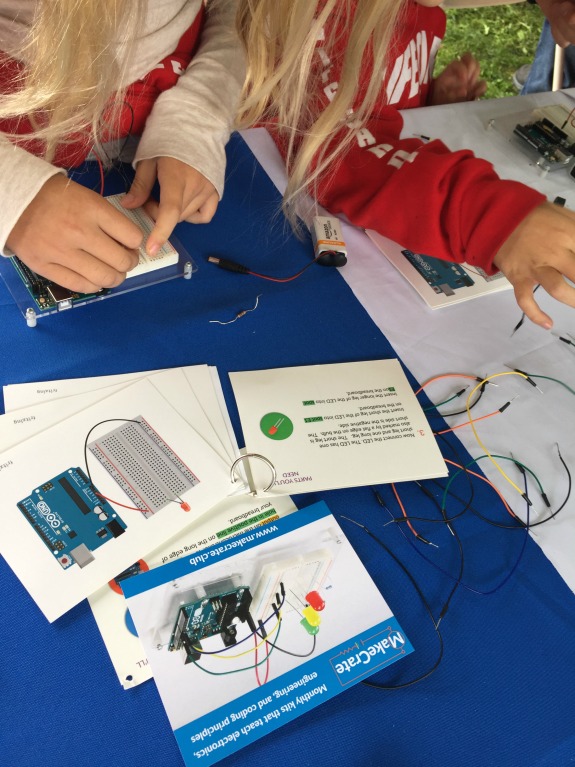 At the MakeCrate booth, my girls were really into creating a project where they could wire an LED and other things. The MakeCrate is a monthly subscription for kids, so it is cool to be able to sample things that we wouldn’t otherwise have heard of.