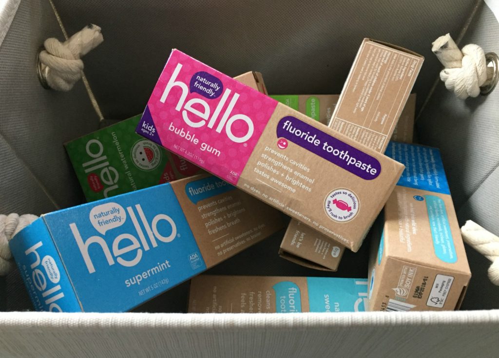 There are so many ways to give back. Not only is it important for me, but it is important for me to pass those values to my children. The holidays can be an easy time to give back, as there are often events like food or toy drives. My workplace recently had a drive for our local food pantry. The food pantry was running low, so we spread the word and the kids did some collecting. One of the things we made sure to include was hygiene items (like Hello Toothpaste!), as this is always on their wishlist. We like to try to donate stuff that we use and love, so the kids had a fun time picking out Hello Toothpaste because they absolutely love these.
