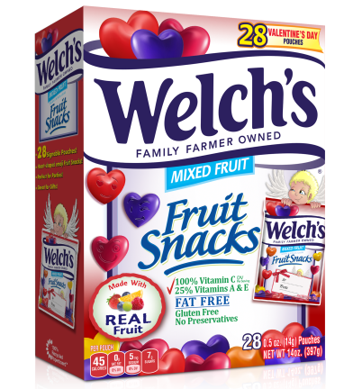 Check out Welch’s® Fruit Snacks for an easy addition to your Valentines! (A 28-Count Box of 0.5oz. pouches runs approximately $4.99). Each pouch features a “To/From” sign-able front panel, making it fun and easy to put together your Valentines!