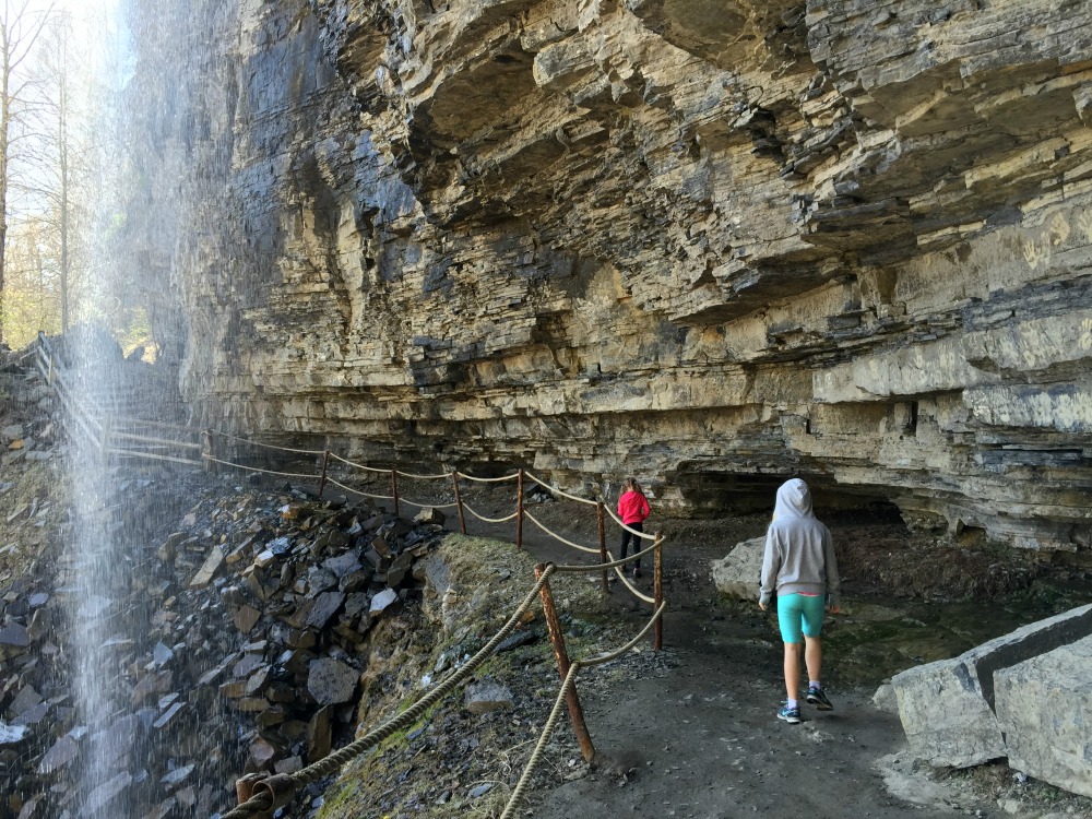 Our kids have enjoyed going on the trail several times, keeping an eye out for things they can find in nature, from critters to “fairy ponds” where water collects under the waterfall, or nooks to check out. There are some informative signs along the way that provide some really interesting history about the park.