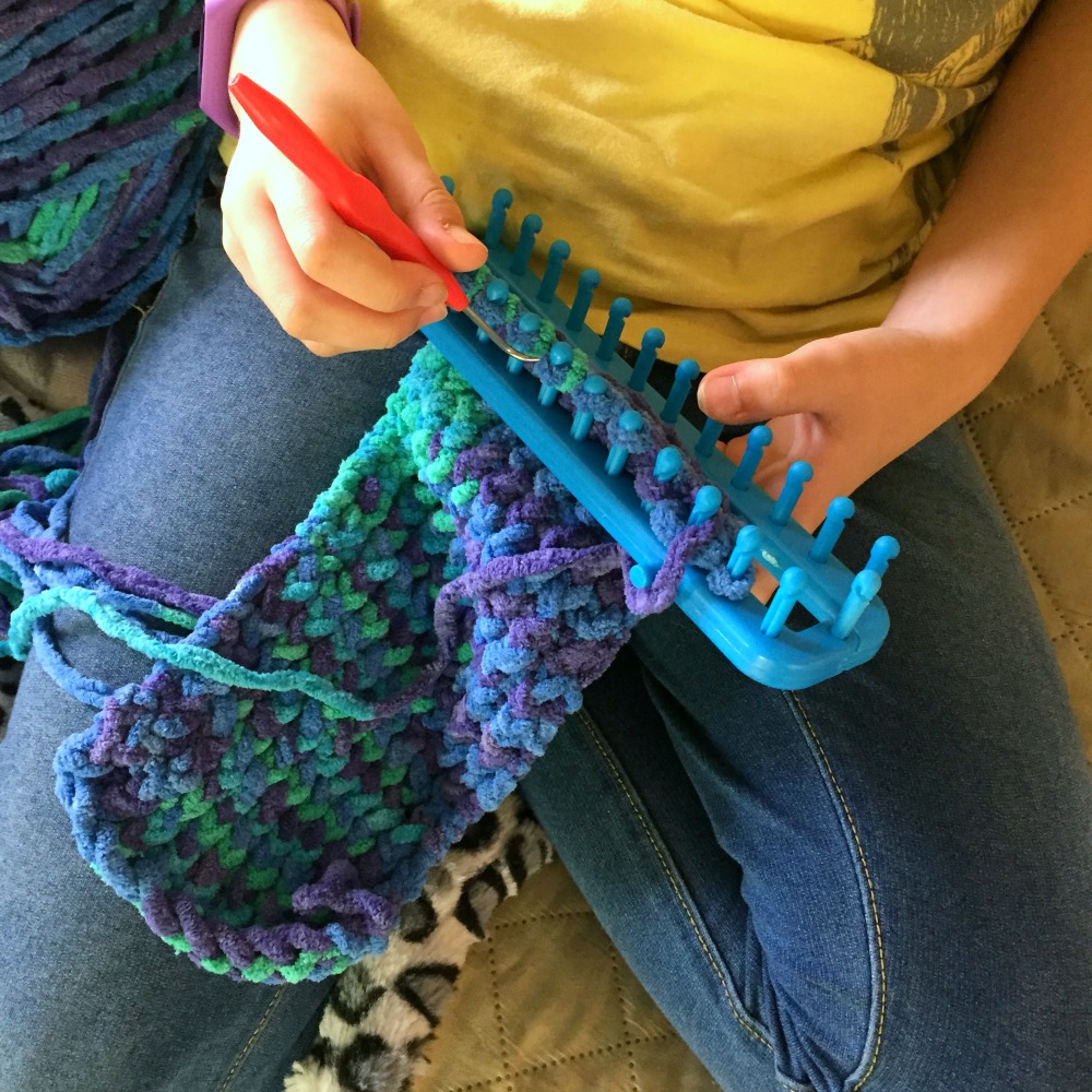 My daughter recently learned how to finger-knit, so the next thing she wanted to try were some looms. She got both round looms and rectangular looms, plus some books on how to use them as well as some awesome yarn too!