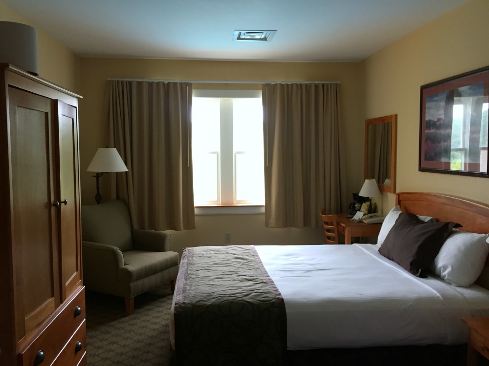Our room was nice, with two queen beds and the basic amenities. The only thing we wished it had was a safe, but otherwise it had the basics we expect from a hotel room. It wasn’t particularly spacious, but that wasn’t a problem. Keep in mind in the winter you are not allowed to bring your equipment to the room, which makes sense as far as space and stashing messy gear.