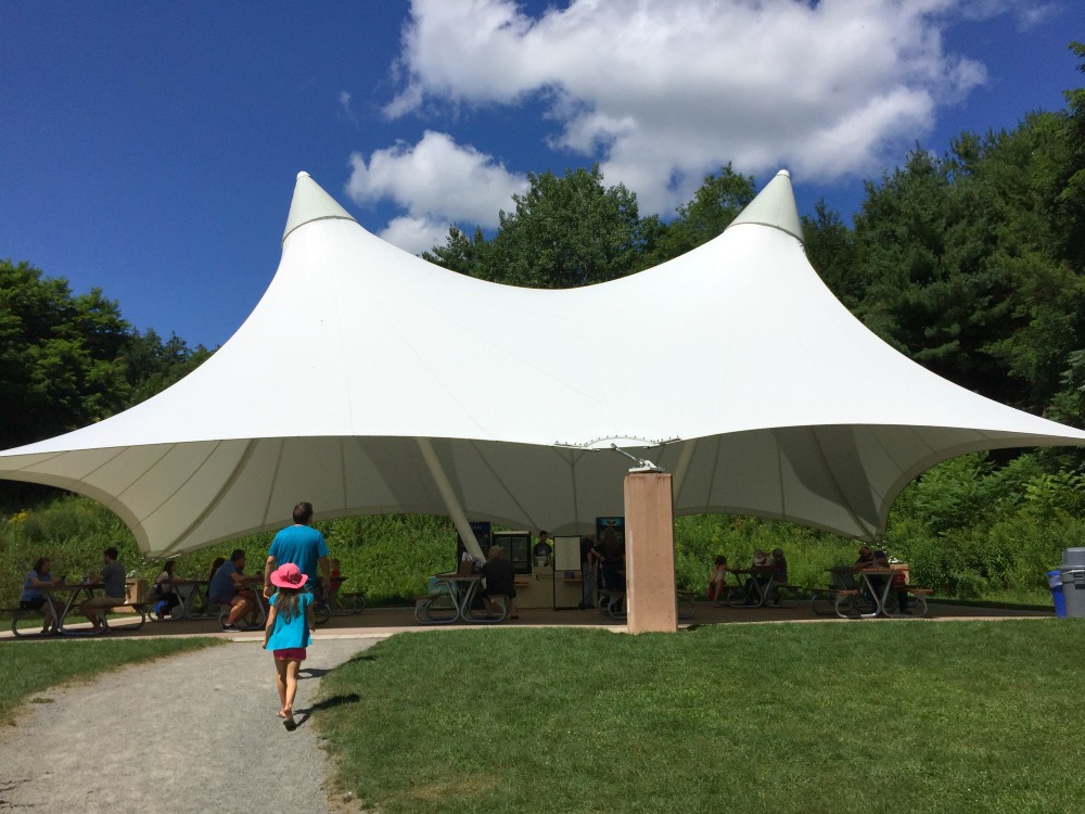 There is a pavilion with a summer cafe where you can purchase food, drinks, and frozen treats. This is a great place to take a break and refuel when the kids get hungry.
