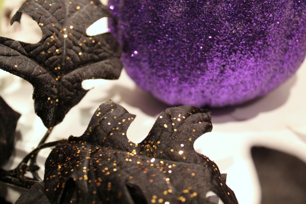 These black leaves with a touch of glitter tie everything together. I love the contrast of the colors with the black leaves, plus they have just a touch of sparkle to make them decorative and eye-catching.