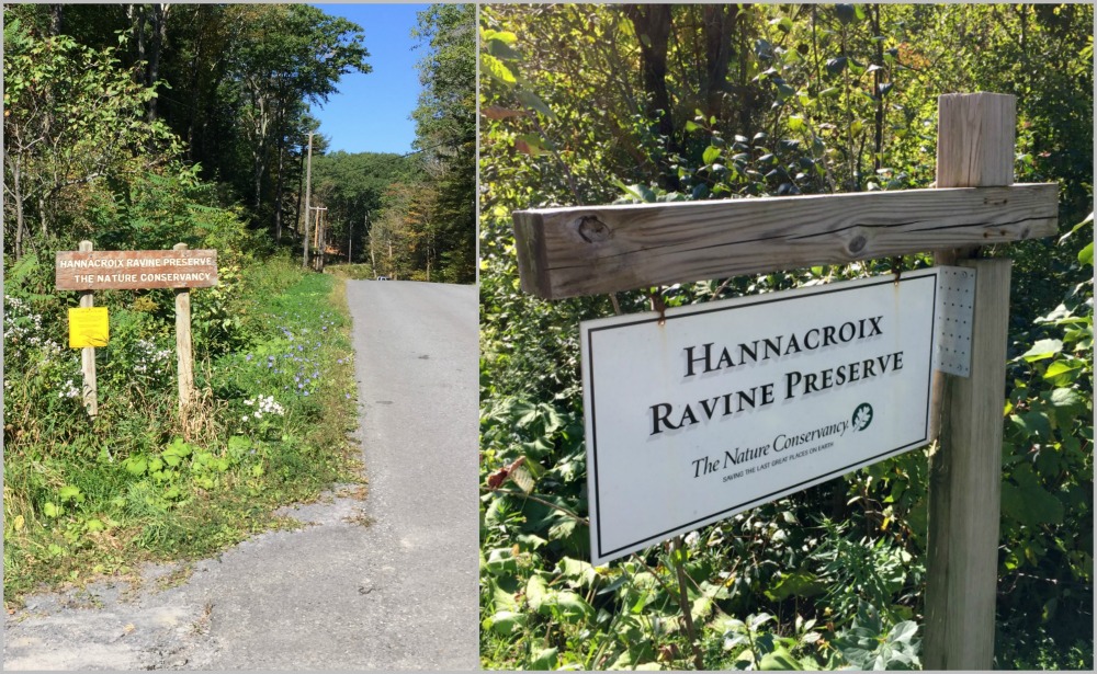 With some beautiful summer weather this September, we decided to visit the Hannacroix Ravine, a Nature Conservancy Preserve. It is located in Clarksville, NY, off Cass Road, and we had no problems finding the preserve using the directions on the Nature Conservancy website and Google Maps. There are signs along the road and a small parking lot that holds two cars.