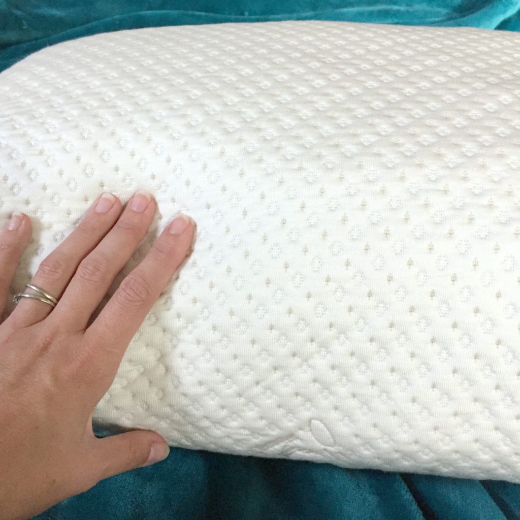 The pillow has a nice quilted fabric that zips over the pillow. The cover is washable, which is great for this busy mom. From cats to sick kids, everything has to be washable in our house! The cover is dust mite resistant and hypoallergenic, which means the pillow will also last longer.