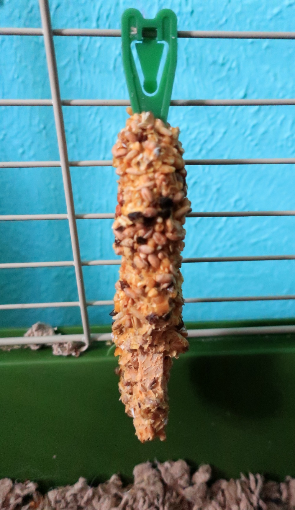 Nutmeg enjoys these treat sticks, and even comes running if you offer it to her at the side of the cage.