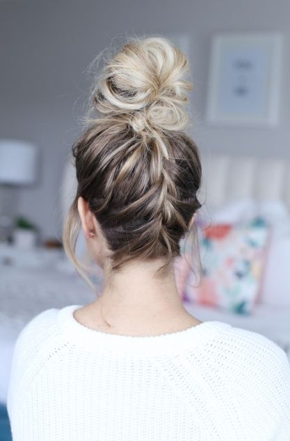 All moms are familiar with morning problems when you have to handle many issues and don’t have enough time to dress up and create a fancy hairstyle. This hairdo is for women who like plain elegance. A French braid always makes the look more sophisticated and polished and in a combination with a bun, it creates a complicated haircut.