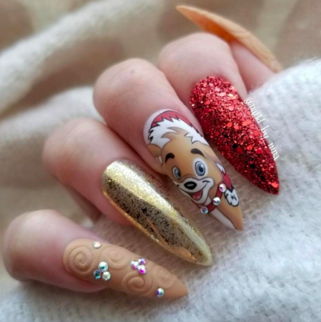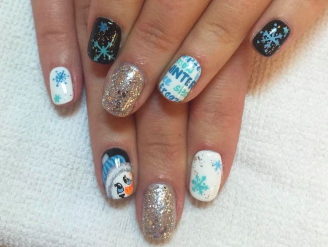 Snowflakes, Christmas tree and snowman are the most popular elements of New Years nail design ideas. Here you have a great space to experiment with colors and forms.
