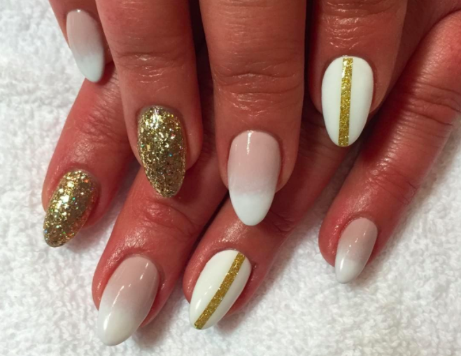 You can also add glitter gold accents to your favorite nail design and create a really festive mani for the party.
