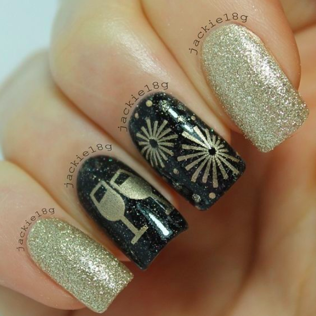 Glasses of champagne and fireworks are the unchanging New Years Eve attributes. Why not have them on your nails?