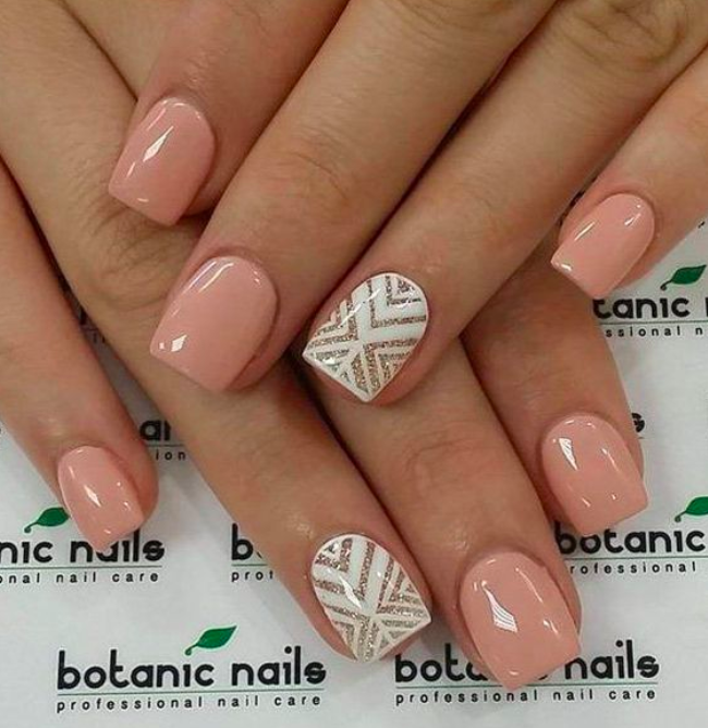 Sometimes you need something simple, even on holidays. Four nails covered with a nude color and one highlighted nail is the best design if you want such simplicity.
