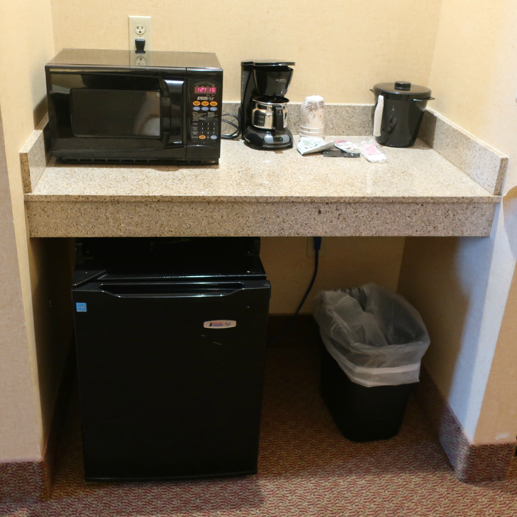 There is a small kitchenette in the room. It is very simple (with a microwave, mini fridge, and coffee maker), but you can save money if you bring some food with you. The coffee maker was ok, but I preferred to buy coffee right by the front lobby and in the water park (it was about $2.50-3.00 for a Green Mountain coffee). I do recommend bringing some food and drink, even if you just bring snacks. Soda in the machines were $3.50 and at the water park it was $4.50, so it would help to be prepared.