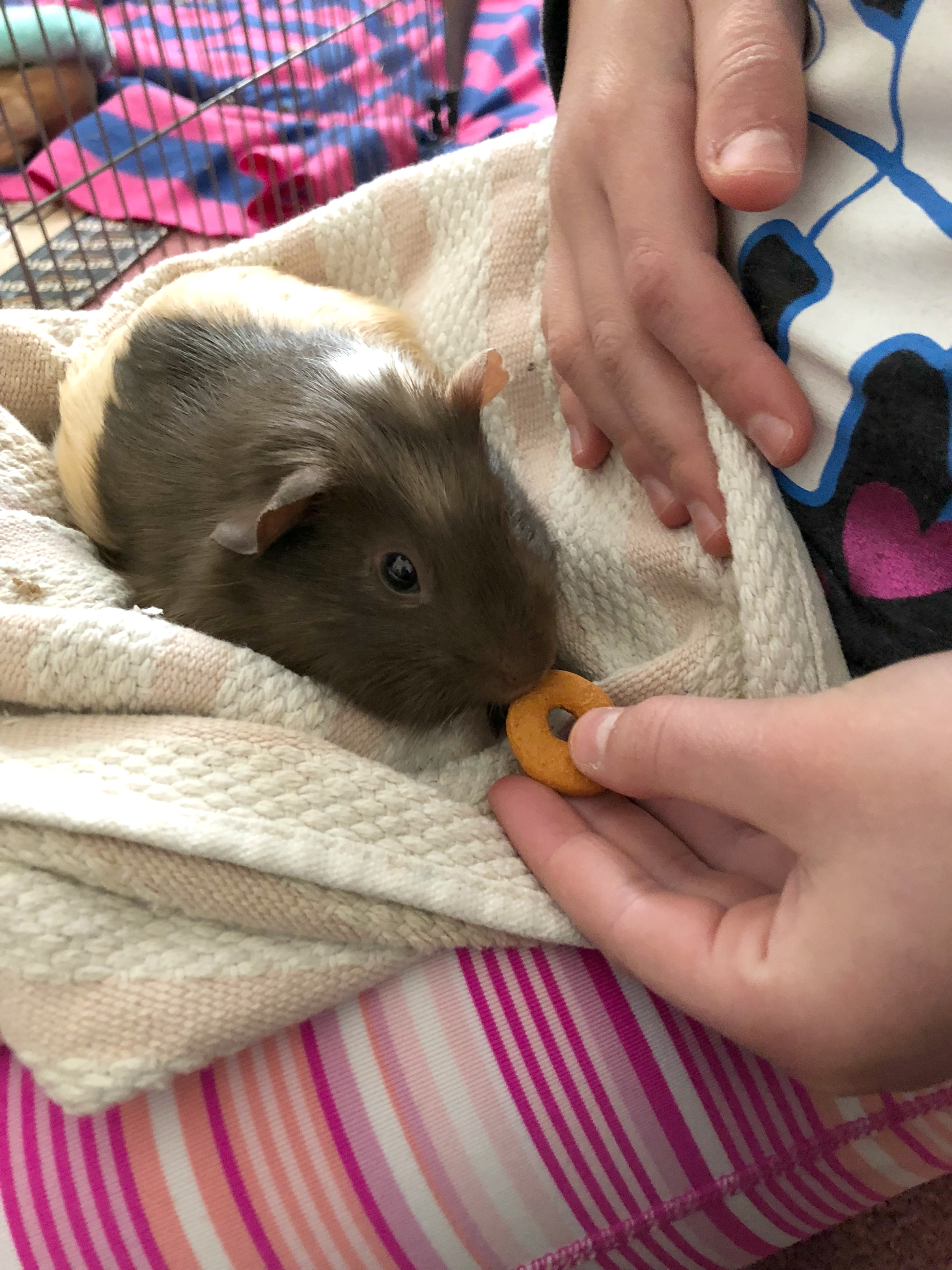 We recently added our second guinea pig to our household, as my younger daughter got a baby guinea pig a few weeks ago. My girls love getting their guinea pigs treats, and they were happy to get some Brown’s Tropical Carnival Hoops & Honey Strawberry Flavor Small Animal Treats to give their piggies.