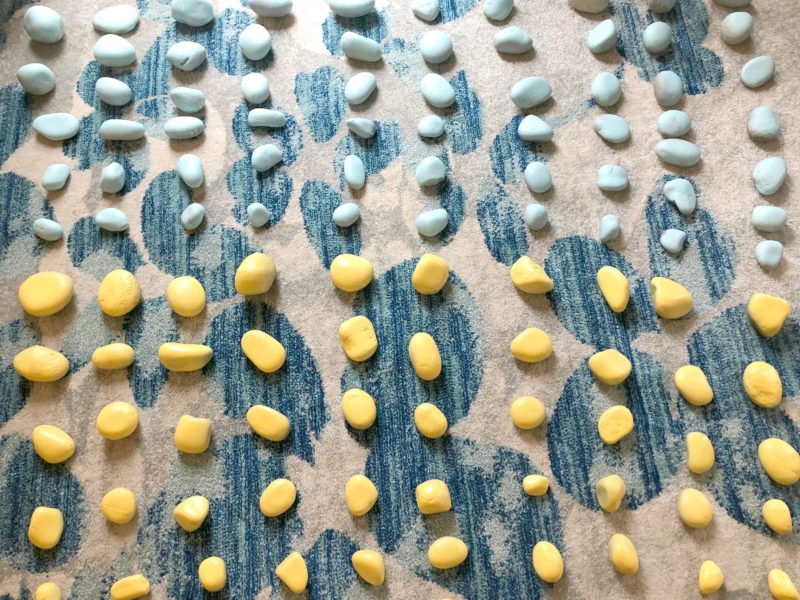 I chose two light colors in a more matte finish, so that the finish wouldn’t be too shiny and in the hopes it would make it easier to decorate the rocks. I wanted light colors so that when the girls put them outside, they would stand out, but that the colors were pleasant to look at.