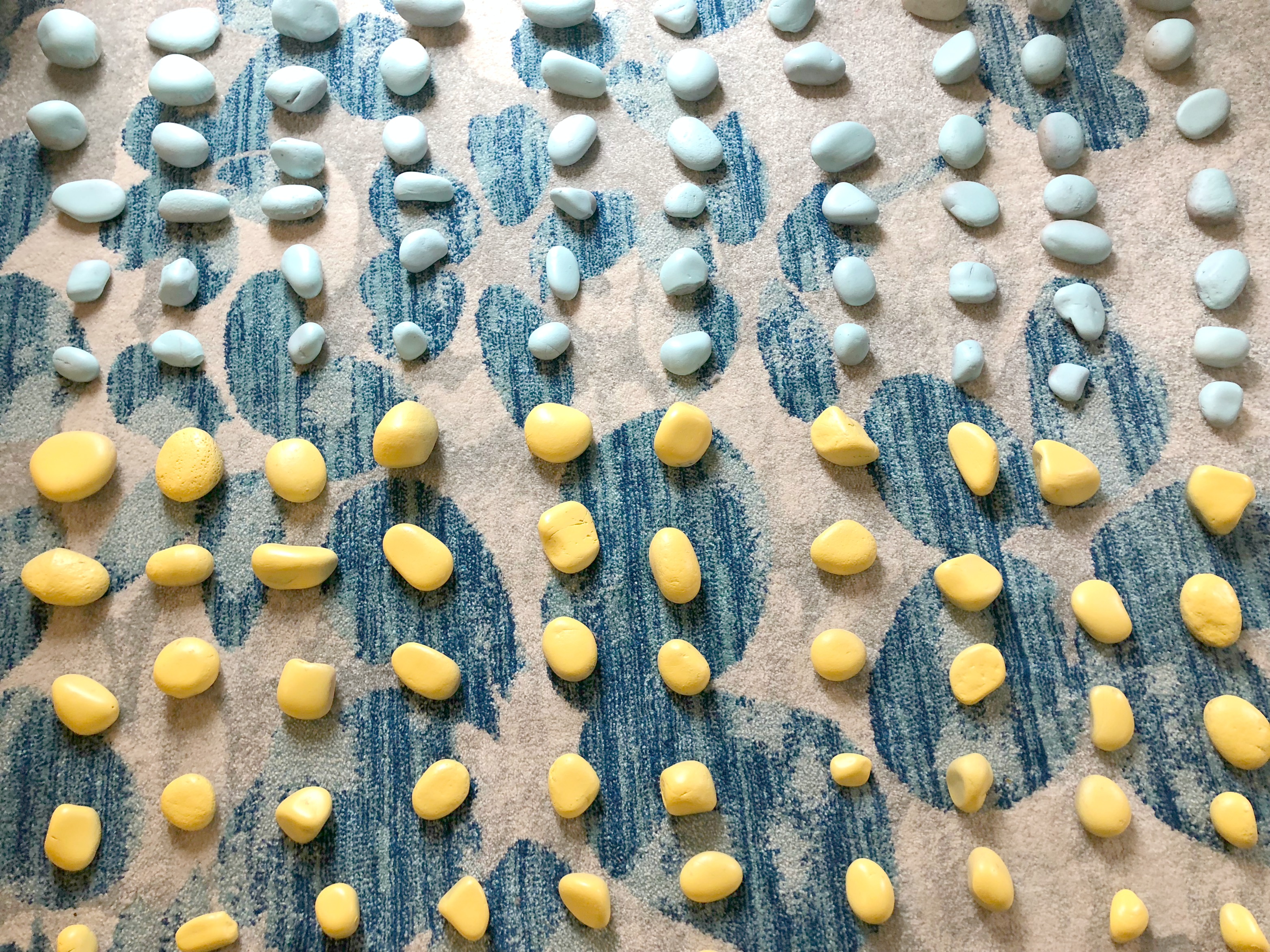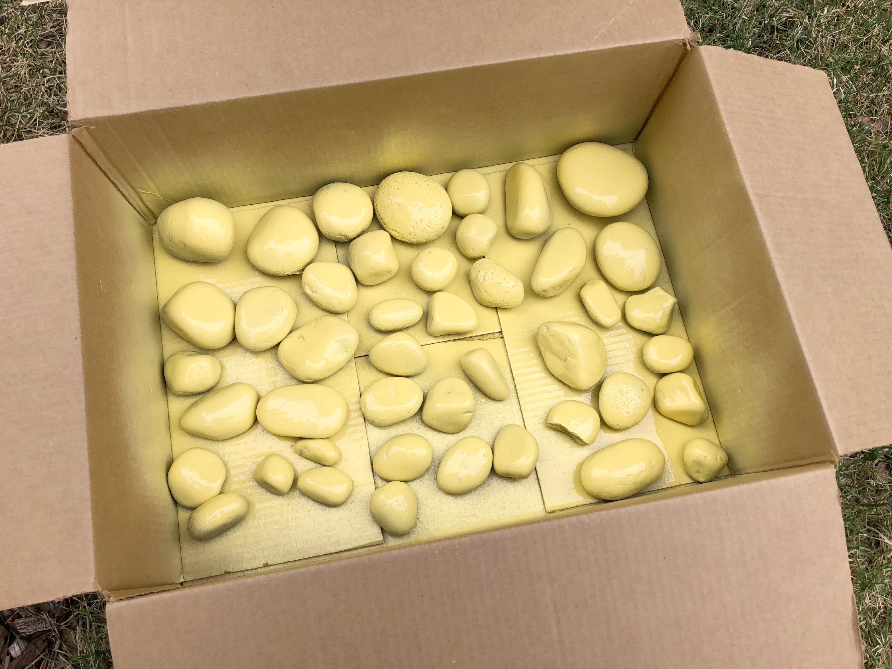 Once the rocks were dry, I laid them out in 10 rows (since I have 10 scouts in my troop). I wanted to make sure there was an even distribution of rocks as far as basic size and colors.