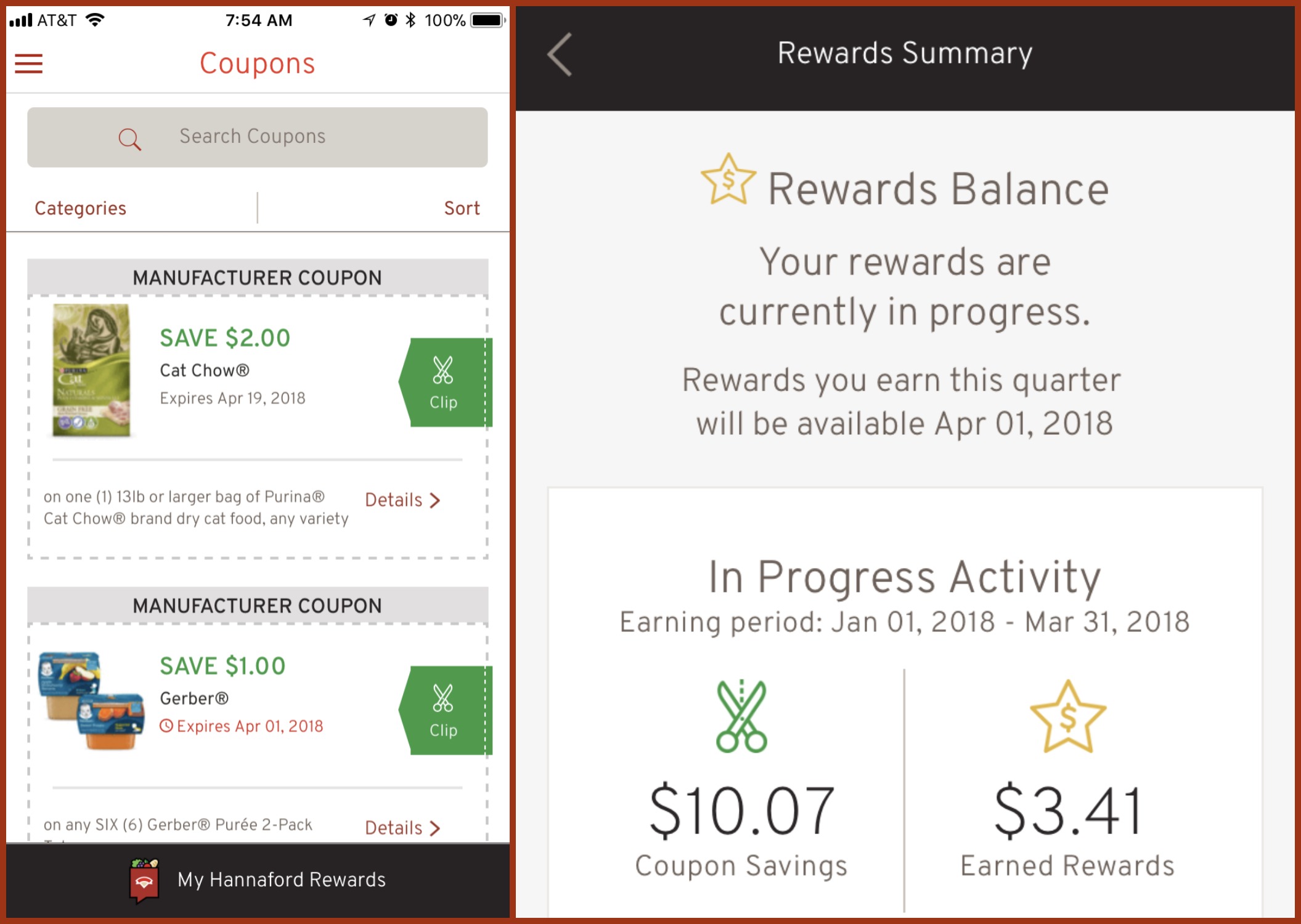 It has only been a couple months using the My Hannaford Rewards program, but we already love it. Right off the bat, the savings started to accumulate. My husband and I each have the app, and are not only earning rewards, but saving an impressive amount with coupons.
