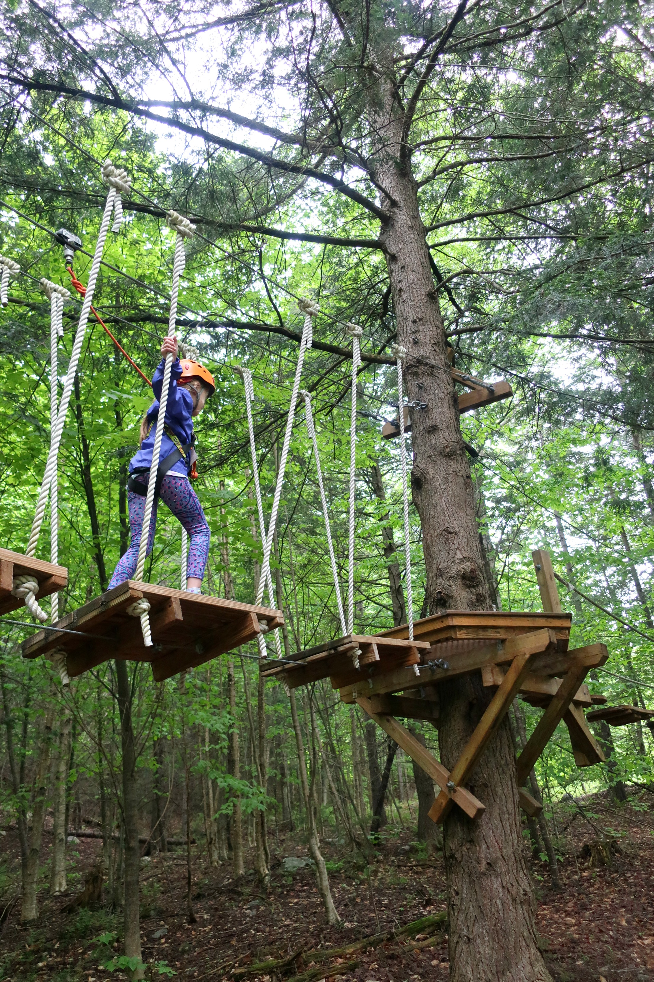 My 8 year old thought the rope loops were the hardest. Since she’s short, it was hard for her to reach the ropes with her feet, and had to figure out to swing to the next rope.