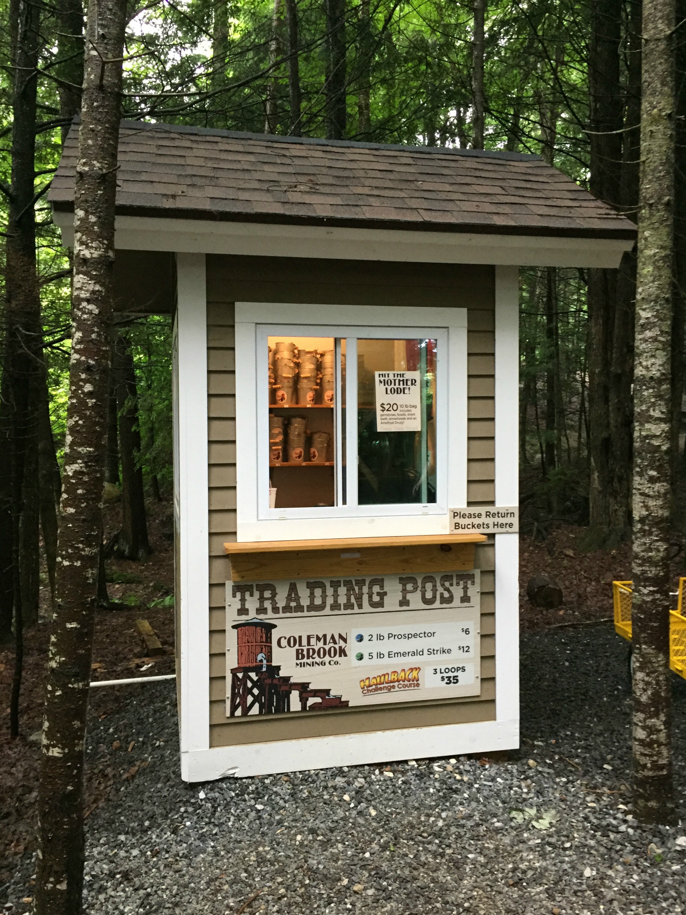 We paid for our tickets at the Trading Post, which is in the woods by the Adventure Course, and were assigned a 1:30pm start time. It had just started raining a little bit, and the course goes on rain or shine (unless there is thunder).