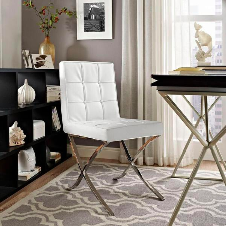 If the lounge chair wasn’t enough, take the luxury of the Barcelona chair into your kitchen or dining space with these upright dining chairs! With the trademark polished steel frame contrasting with premium leather, this dining chair is so comfortable you’ll find yourself reluctant to leave the table once the meal is done. The armless, padded design condenses the classic Barcelona lounge chair into one that is appropriate to eat and socialize out of.